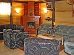 - гостиная с камином с мягкой мебелью (2 раскладных дивана, кресла, журнальный столик, кальян), телевизор, обеденный стол;