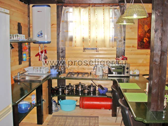 - кухня совмещенная с гостиной (мойка, плита, холодильник, микроволновая печь, эл. чаник, полный набор посуды);
